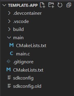 VSCode의 'View→Command Palette...'에서 'ESP-IDF: Create project from extension template'을 통해 프로젝트 폴더와 기본 file structure를 구성한다.