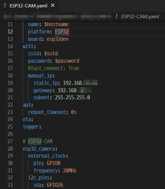 YAML에서는 위처럼 네트워크와 camera pinning에 대한 부분을 설정하게 된다. Arduino framework를 이용했을때보다 훨씬 짧은 코드로, 마치 config파일의 설정만 몇개 바꾸듯이 scripting을 하면 된다.